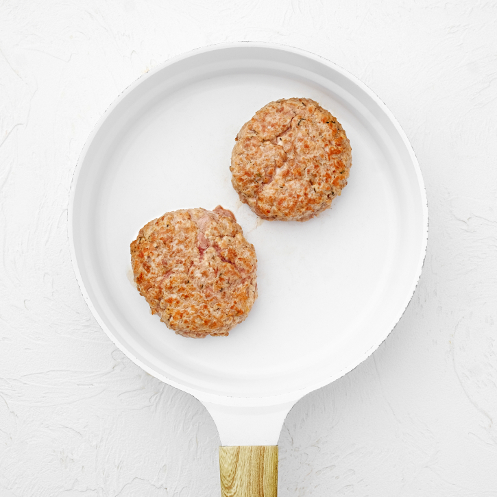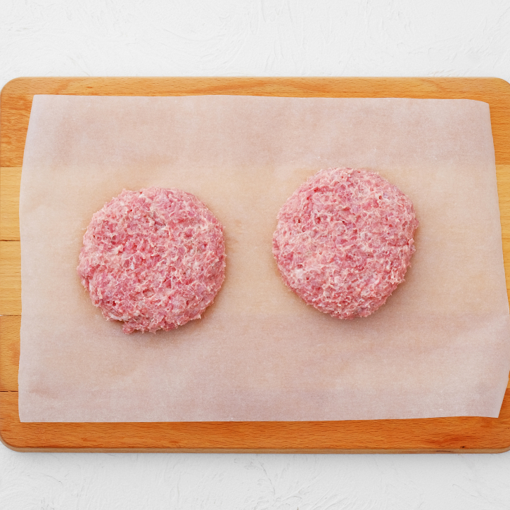 Сформируйте 4 круглые котлеты толщиной примерно 2 см. Переложите на разделочную доску, застеленную бумагой для выпечки, и уберите в морозильник до использования.
