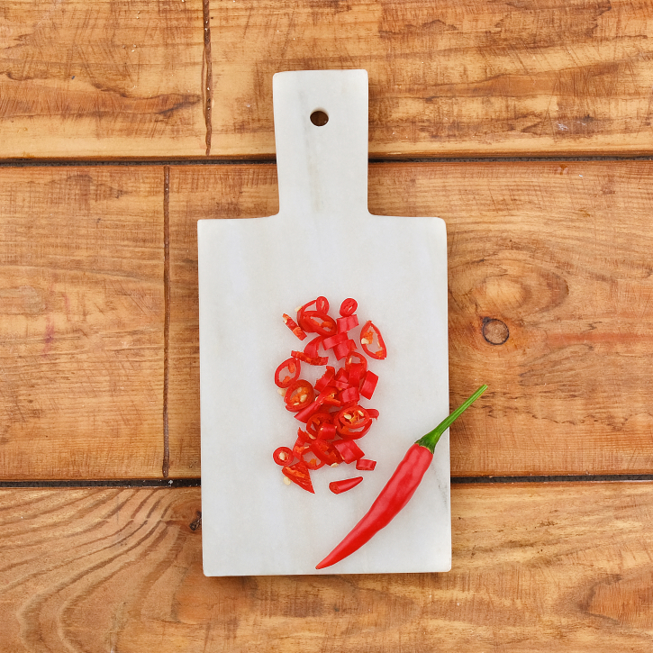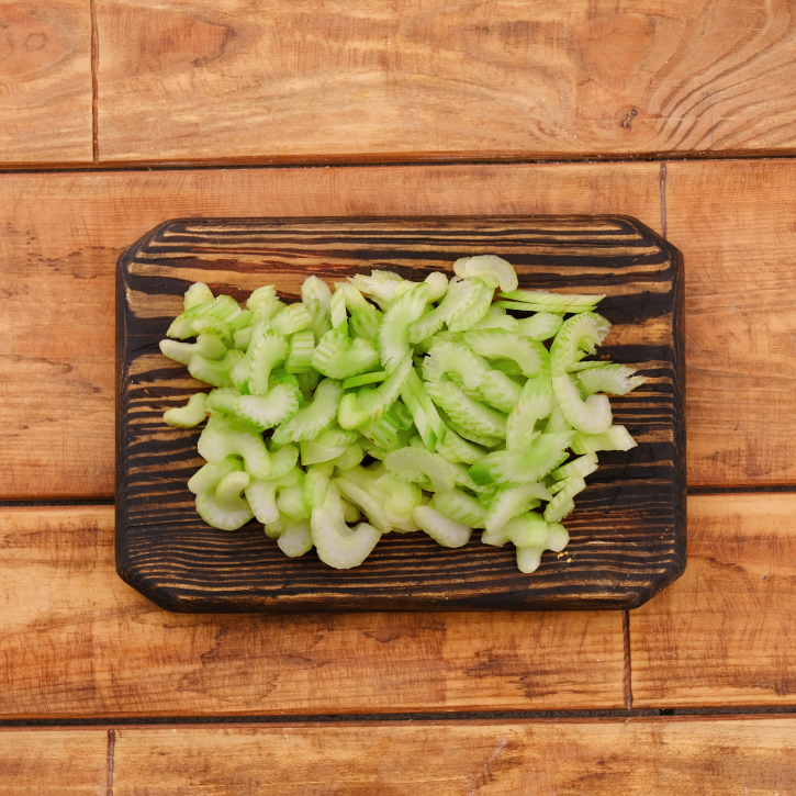 У крупных черешков сельдерея ножом для чистки овощей удалите внешний слой жестких волокон. Нарежьте сельдерей тонкими ломтиками.