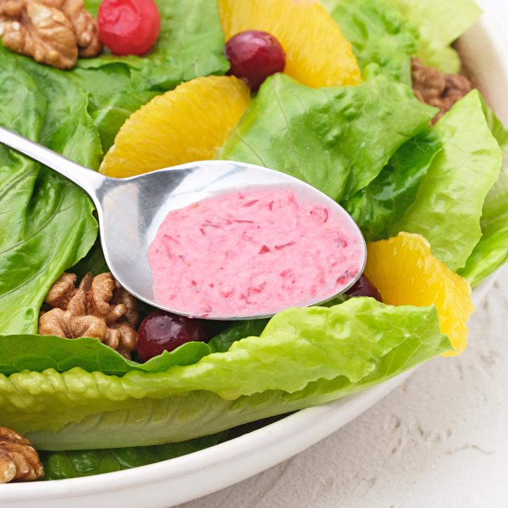 В блендере измельчите 2 ст. л. клюквы в пюре, добавьте мед и майонез «Я Люблю Готовить» Классический провансаль, взбейте до однородности. Если нужно, немного посолите и поперчите заправку.